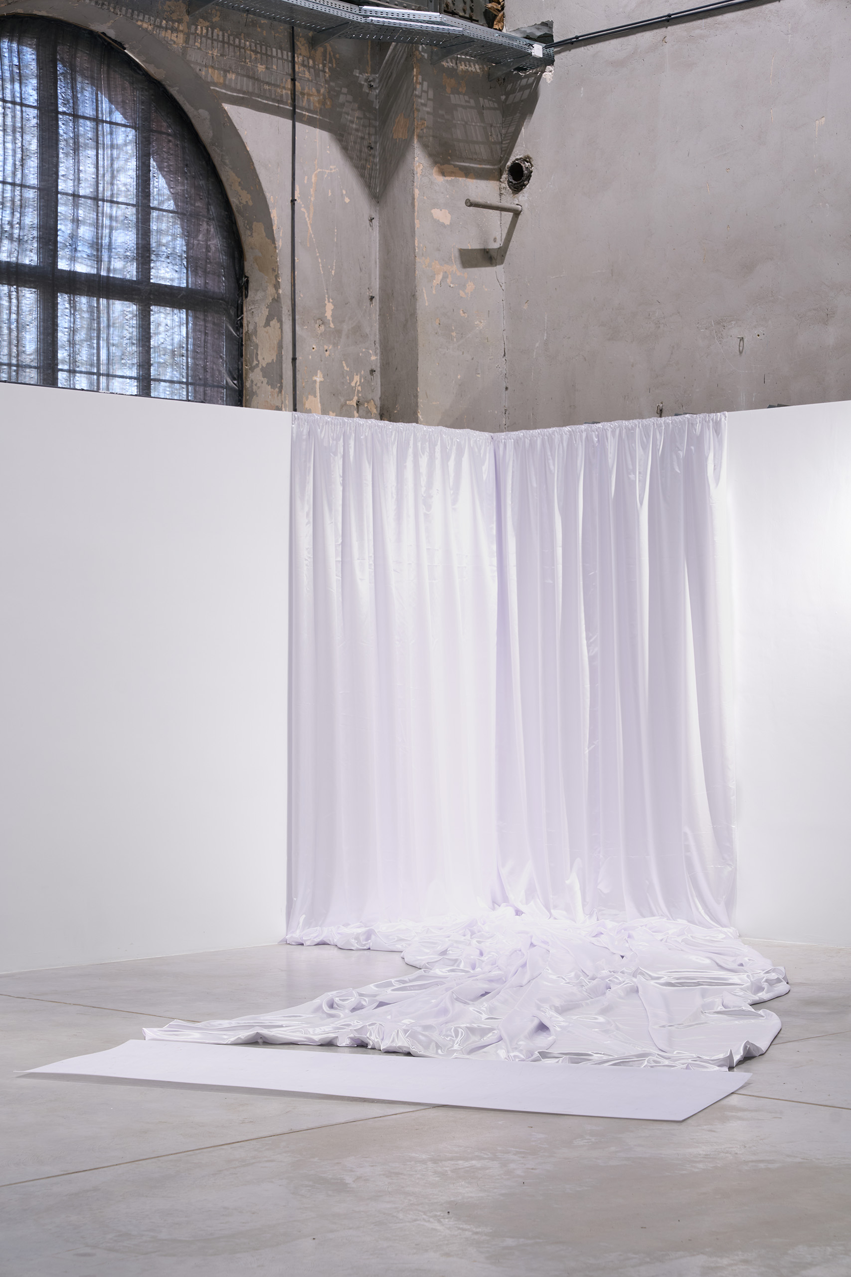 The curtain will always be a boundary—between mystery and fiction, between feigned ease and the real struggle with one’s way of moving. It creates a kind of game, hidden in the folds of the material, spreading downward.